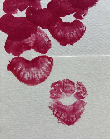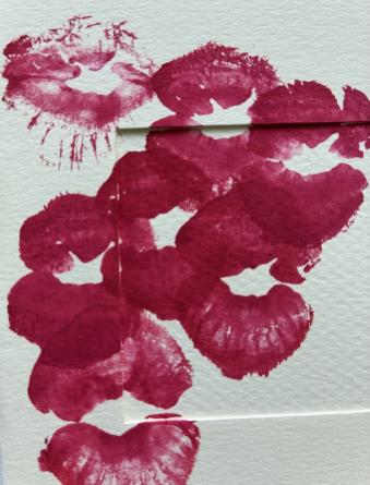 • Original Aquarell Lippenform von IK, Wien, Billet mit Kuvert